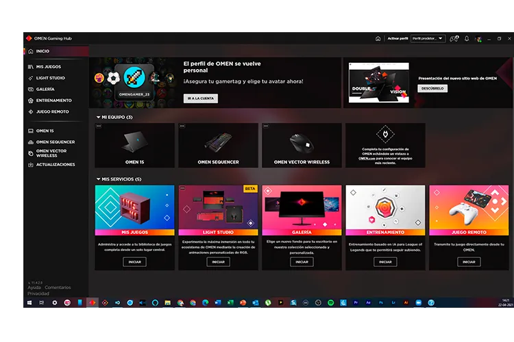 ALMACENAMIENTOSSD PCIe® NVMe™ de 1 TBOMEN Gaming HubEleva tu experiencia de juego en cada partida combinando de manera fluida la optimización del rendimiento, herramientas de personalización, además de contenido y servicios de juegos para desbloquear una experiencia de gaming sin igual