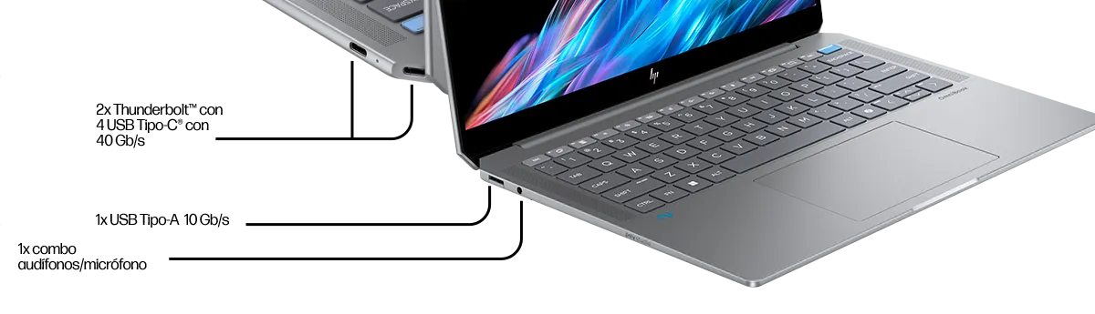 Trabaja con el motor más potente con IANueva HP OmniBook Ultra 14 Next Gen AI PC. Libera tu creatividad al máximo con la inteligencia artificial que te ofrece un rendimiento excepcional y una batería de hasta 22 horas de duración*.Procesadores AMD Ryzen™ AI 9Motor de IA exclusivo de hasta 55 TOPSCámara de infrarrojos de 9 MP con IAWi-Fi 7 y Bluetooth 5.4Hasta 22 horas de batería, te acompaña donde vayasPantalla Táctil OLED 2,2 K de 14"El motor de IA más rápido para trabajarHerramientas avanzadas para editar videos y fotos al instante con Inteligencia Artificial y rendimiento excepcional del procesador AMD Ryzen™ AI serie 300, con NPU de hasta 55 TOPSHP AI CompanionNuestro asistente de IA, resolverá tus dudas y mejorará el rendimiento de tu PC. Todo esto mientras aprende y se adapta a ti sin compartir tus datos.Crea todo el día con 22 horas de bateríaDiseño en aluminio ultraligero y delgado con batería hasta 22 horas* optimizada por IA te acompaña a donde vayas.Poly Studio con IA para Videollamadas efectivasVideollamadas por inteligencia artificial en cámara de 9MP con encuadre automático, ajuste de contacto visual y desenfoque de fondoSeguridad avanzada contra ciberataquesHP Wolf Security protege tu laptop contra ciberataques humanos y de inteligencia artificial que cuida tus datos y mantiene una copia de seguridad del sistemaUna nueva era de IA comienzaConoce las PC Windows más rápidas e inteligentes de la historia, diseñadas para hacer que las experiencias de IA únicas cobren vida, con una velocidad ultrarrápida y rendimiento fluido.PuertosDiseño sustentableDiseñada con un 85 % de metales reciclados y un 45 % de plásticos de origen oceánico reciclado*. Con registro EPEAT® Gold Climate+** y con la certificación ENERGY STAR®Galería de Imágenes