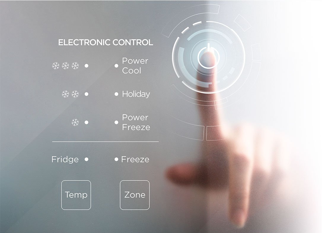 Faacute;cil de usar y ajustar con la pantalla digital del panel frontal. Su cómoda pantalla táctil permite un control preciso de la temperatura en cada compartimiento, acceso directo a funciones opcionales sin necesidad de abrir la puerta y visualización de la alarma